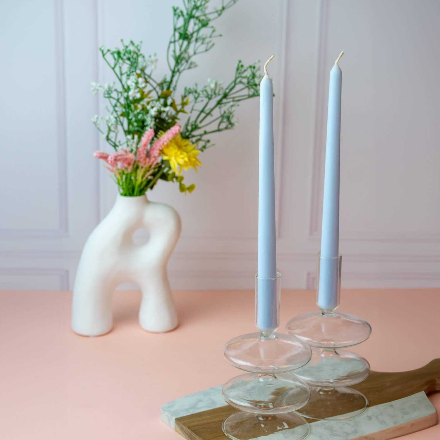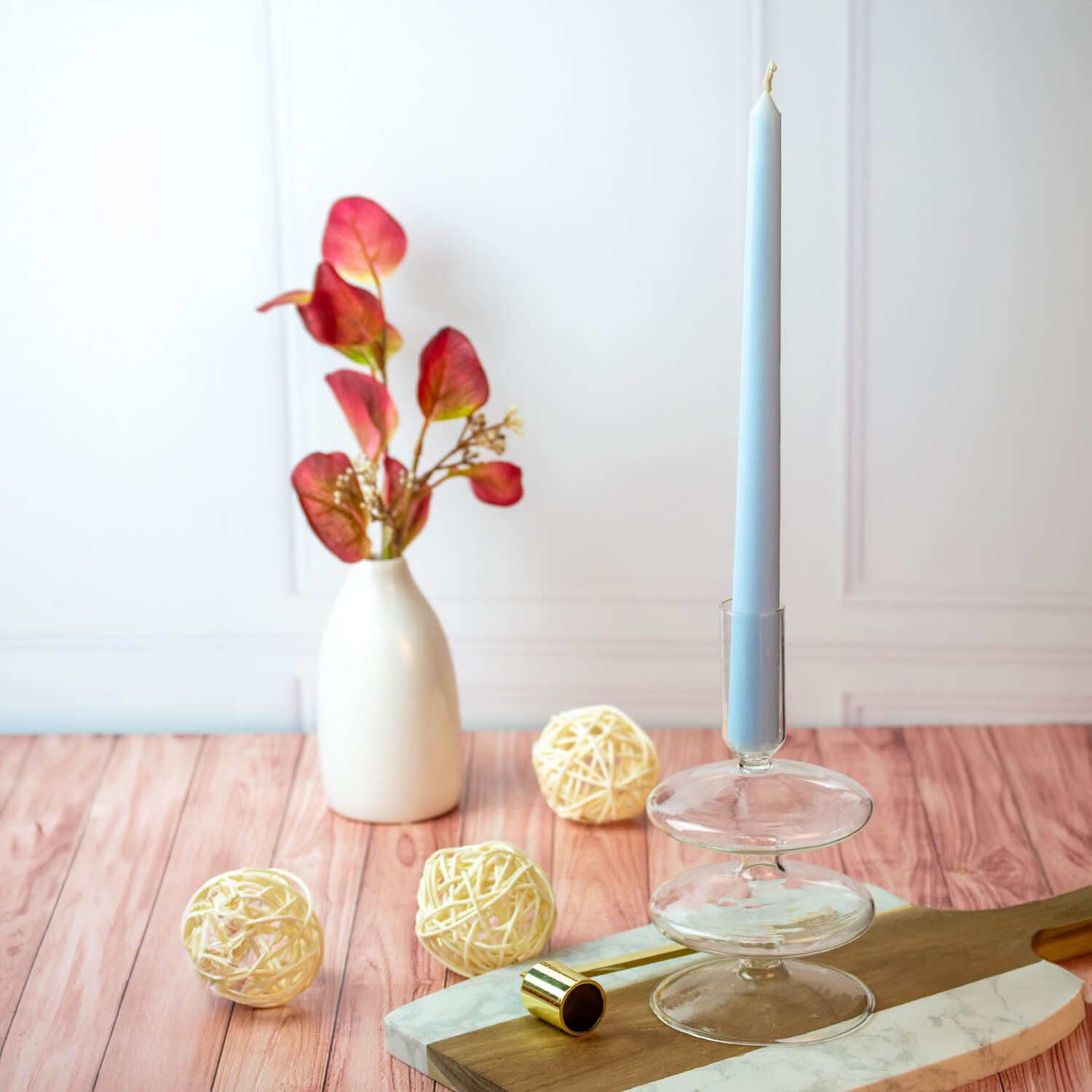 Bring timeless elegance and effortless ambiance to any setting with Estrella Blanca 10-Inch Light Blue Dripless Taper Candles. Crafted from a refined paraffin blend, each unscented candle delivers a steady, smokeless flame with a burn time of approximately 7–10 hours, making it ideal for extended dinners or everyday décor. Designed with a classic 0.7-inch base, these tall taper candles fit most standard candlesticks and holders, allowing easy styling for centerpieces, dining tables, restaurants, or relaxation spaces. The dripless design and cotton wicks help protect surfaces from wax mess while providing a clean, consistent burn. Sold in a convenient 4-pack and securely packaged, these versatile taper candles elevate any space with soft, elegant light. Elevate every moment with the long-lasting, worry-free glow of Estrella Blanca.