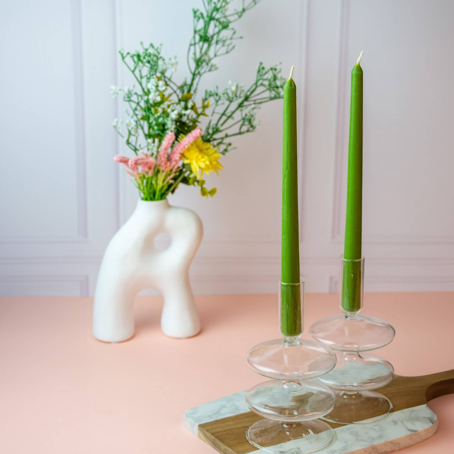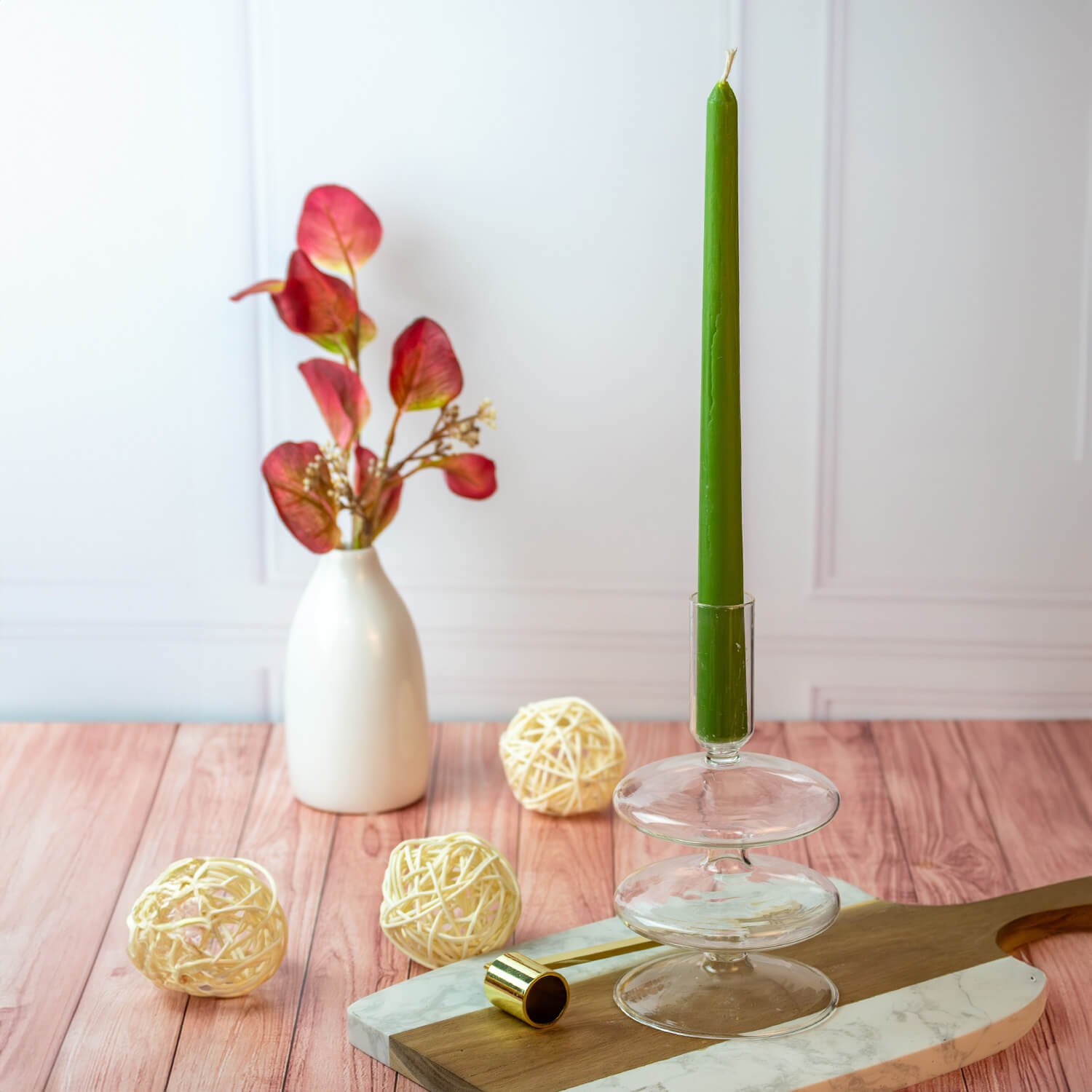 Bring timeless elegance and effortless ambiance to any setting with Estrella Blanca 10-Inch Sage Green Dripless Taper Candles. Hand-poured from a refined paraffin blend, each unscented candle delivers a steady, smokeless flame with a burn time of approximately 7–10 hours, ideal for extended dinners or everyday décor. Designed with a classic 0.7-inch base, these tall taper candles fit most standard candlestick holders, candelabras, and decorative stands, making them easy to style for centerpieces, dining tables, restaurants, or relaxation spaces. The dripless design and cotton wicks help protect surfaces from wax mess while providing a clean, consistent burn. The soft sage green color complements modern, vintage, and rustic décor styles alike. Sold in a convenient 4-pack and packaged for protection, Estrella Blanca taper candles arrive table-ready and are suitable for both indoor and outdoor use. Create a warm, refined glow without overpowering fragrance or smoky residue. Elevate any space with the long-lasting, worry-free glow of Estrella Blanca.